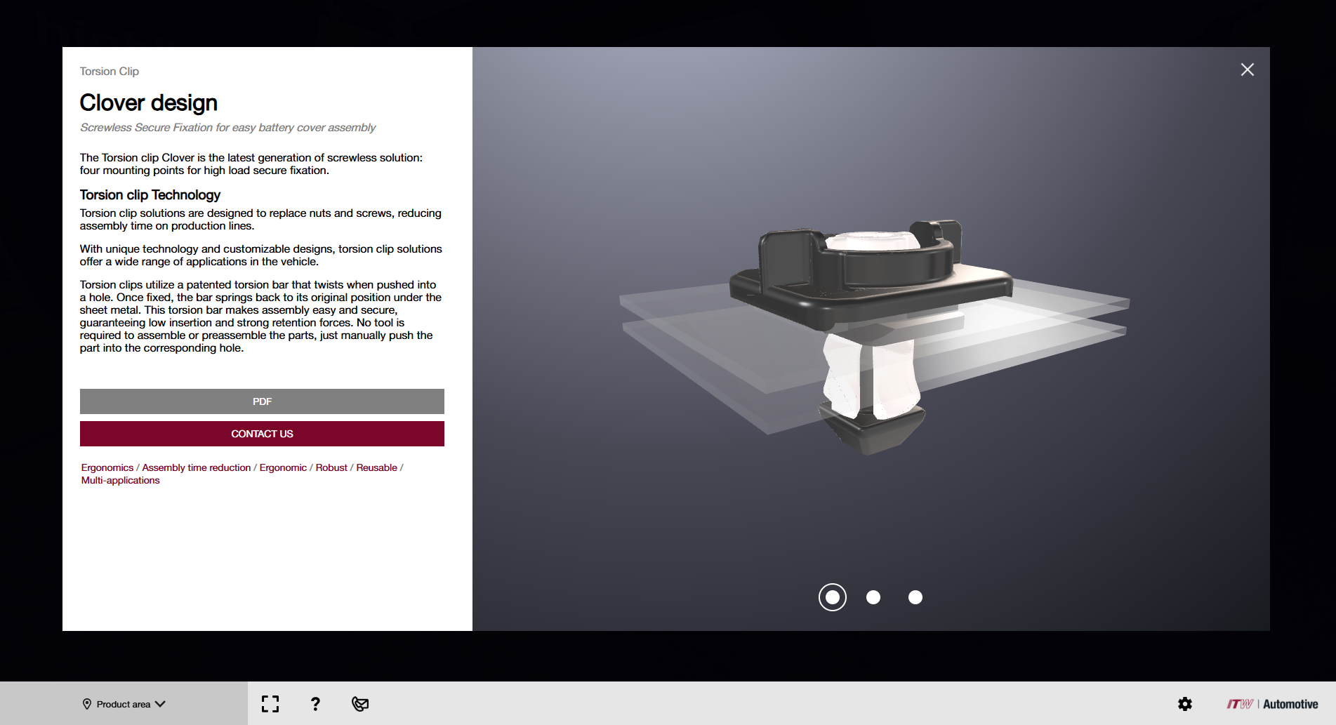 Immersive Product Experience: Understand design and application in seconds through real-time 3D visualization, interactive hotspots, and rich media.