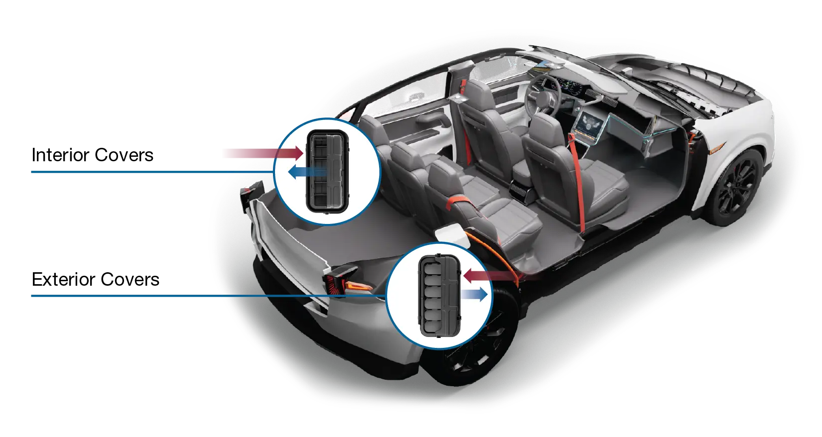 Covers can be tailored to specific vehicle needs. External covers deflect noise outward, while internal covers absorb sound or redirect it away from passengers. Additional insulation can be integrated to boost acoustic performance. ITW air extractors feature front and rear retention features, allowing covers to be clipped securely into place. This modular architecture enables rapid adaptation across programs with varying acoustic and packaging requirements.