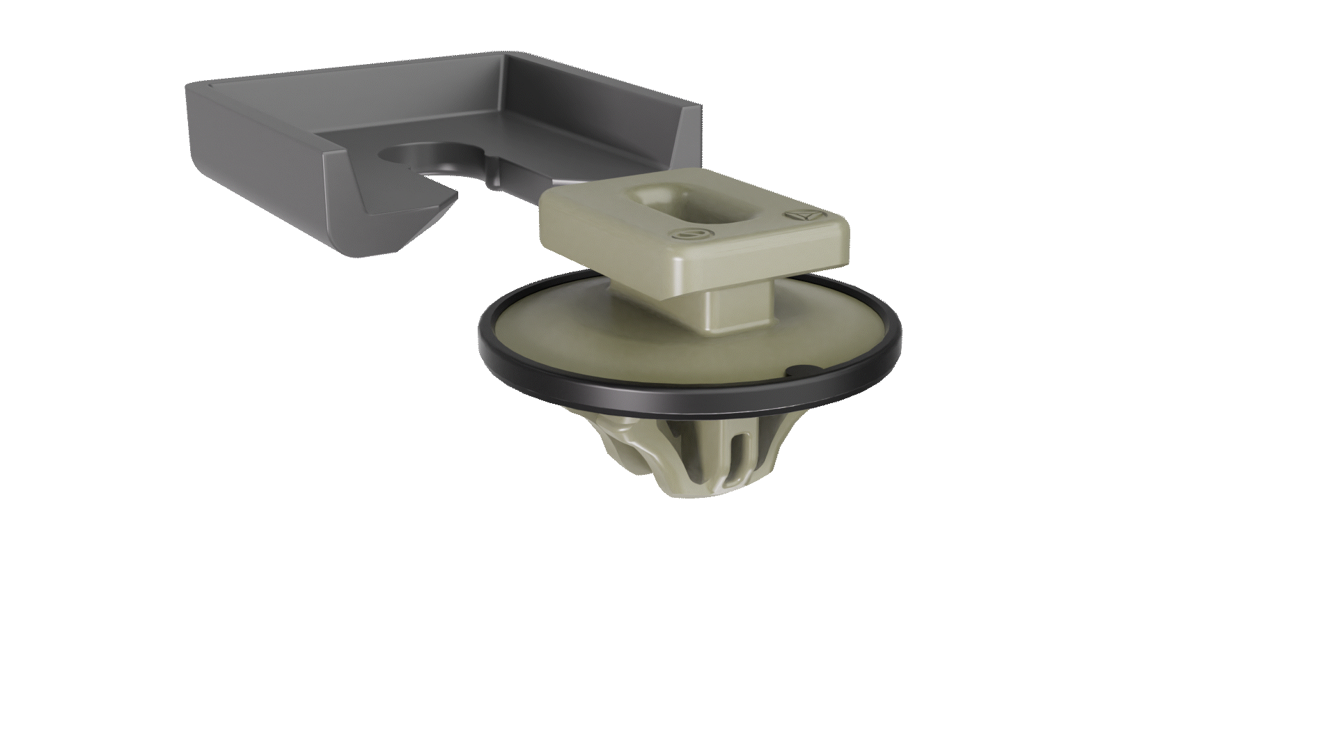 Four flex arms pull the component to the vehicle, minimizing panel gap.