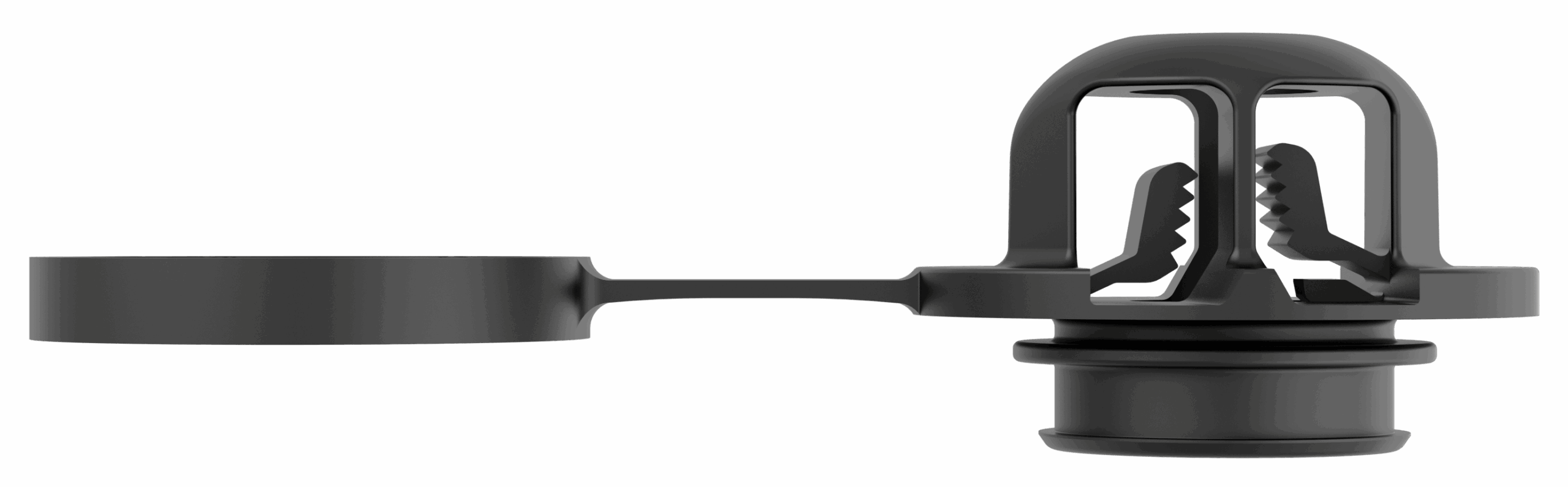 A one-piece, high-retention stud fastener that supports PIA assembly and tool reuse. It’s snap ring secures the fastener to the component, simplifying design and tooling. It ships as a single part, installs with a fold-and-snap action, allows ergonomic push-on assembly, and stays with the panel to prevent lost components.